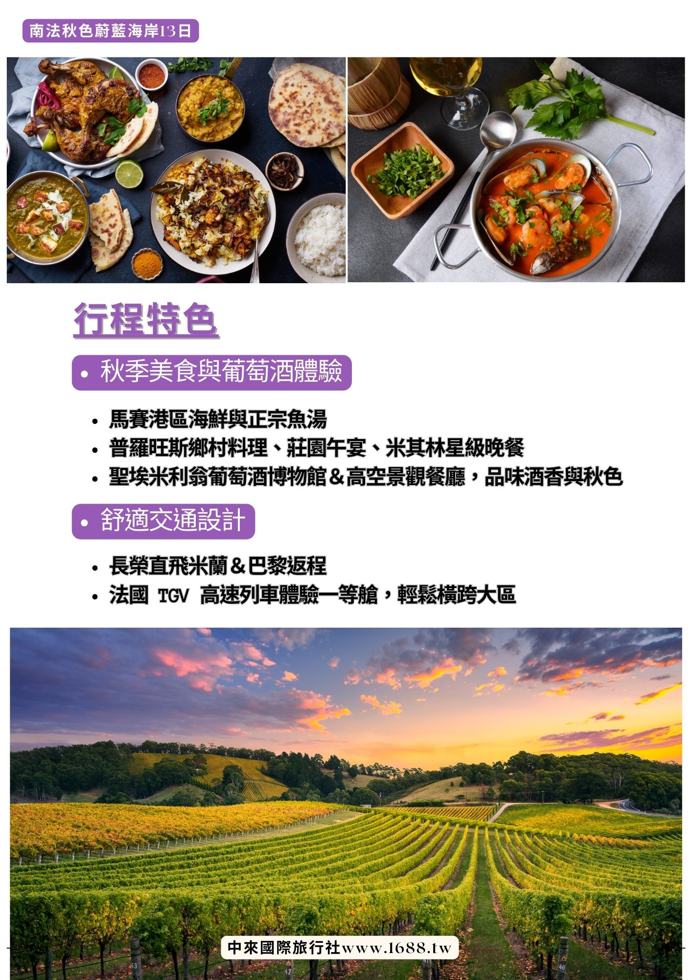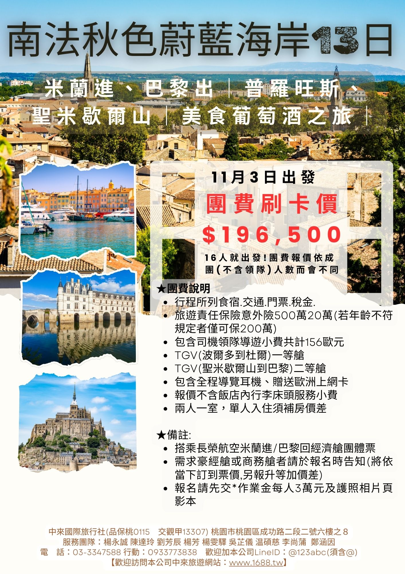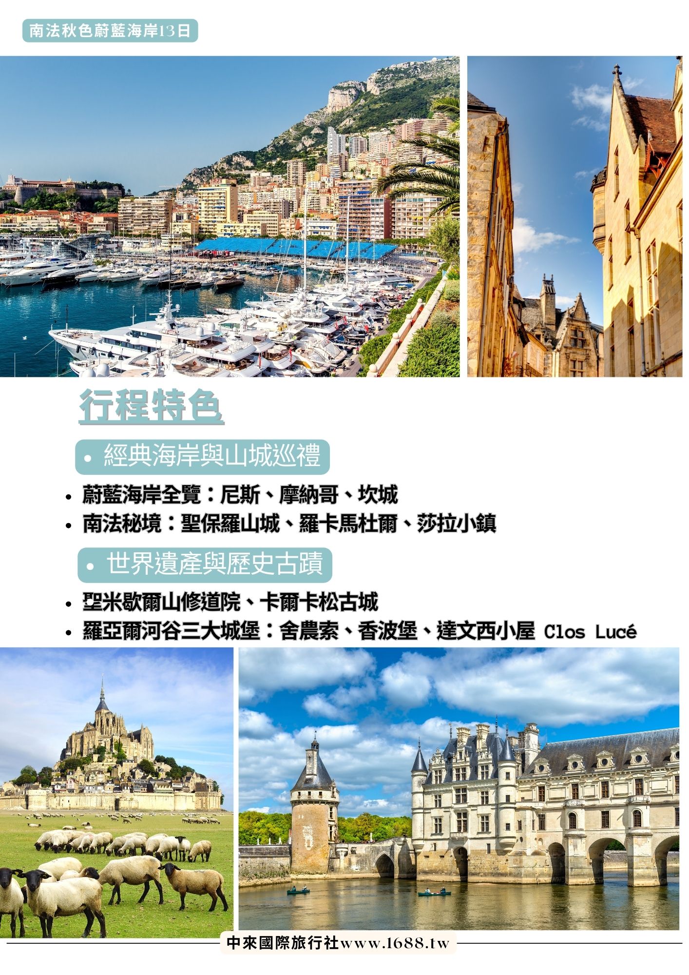 班機抵達於隔日一早抵達後開始南法13日行程。