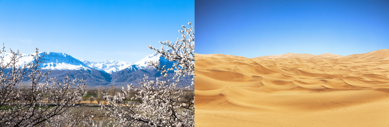 | 第5天 | 4/18 新源 → (二進)吐爾根杏花溝 (上午半日自由攝影參觀*騎馬自理) → 霍城圖開沙漠(拍攝傍晚沙漠美景*騎駱駝或滑沙自理) → 夜宿霍城清水河鎮 |