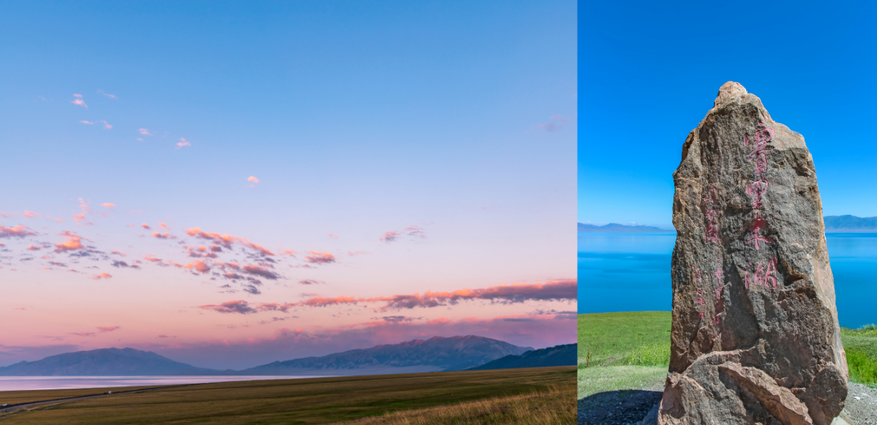 - 賽湖西岸草原區|湖畔草原+牛羊: 湖岸逐漸轉為緩坡草原,夏季綠意鋪滿視野,牛羊悠閒漫步。這裡特別適合拍攝人像照、行走感畫面,人物站在湖與草原之間,畫面自然有層次。