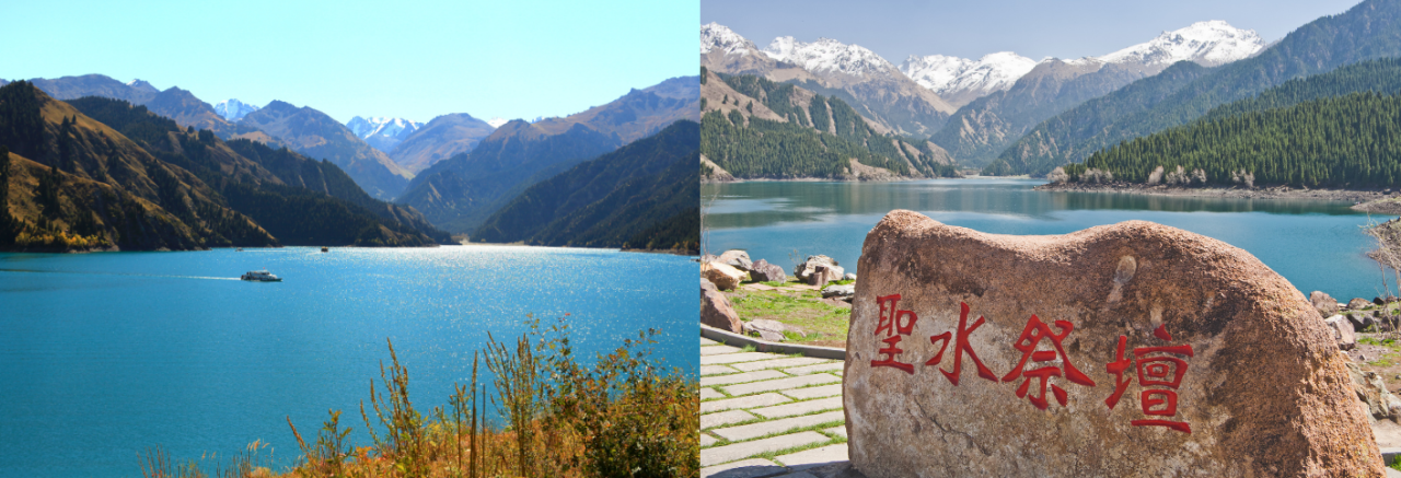 - 天山天池(車程約 2–2.5 小時)位於天山博格達峰北麓,距烏魯木齊約 110 公里,是新疆最具代表性的自然景觀之一。湖泊座落於高山盆地之中,湖水隨光線呈現深藍、翠綠色調,四周雪峰、森林與草坡環繞,景色壯麗而純淨,被譽為「天山明珠」。(含景區環保車上山)