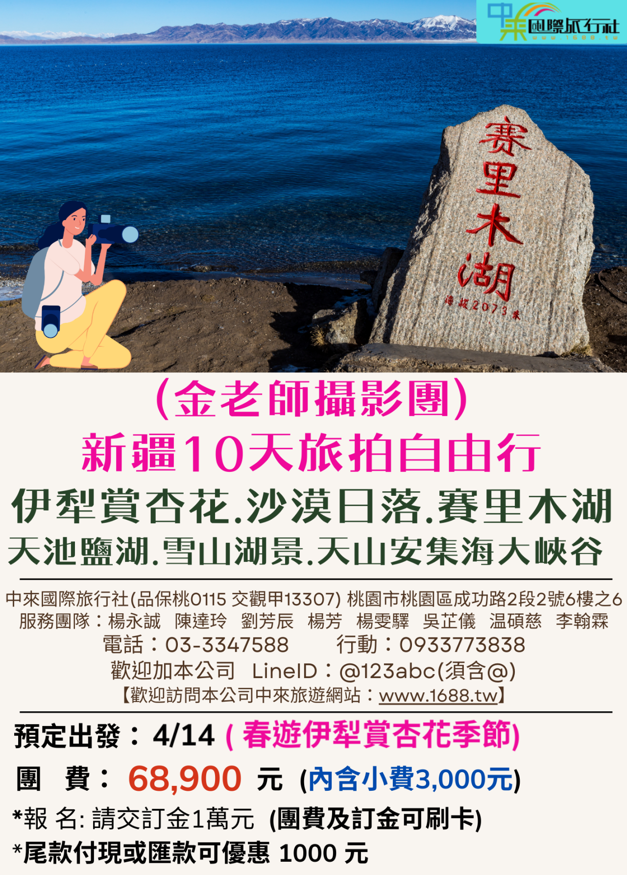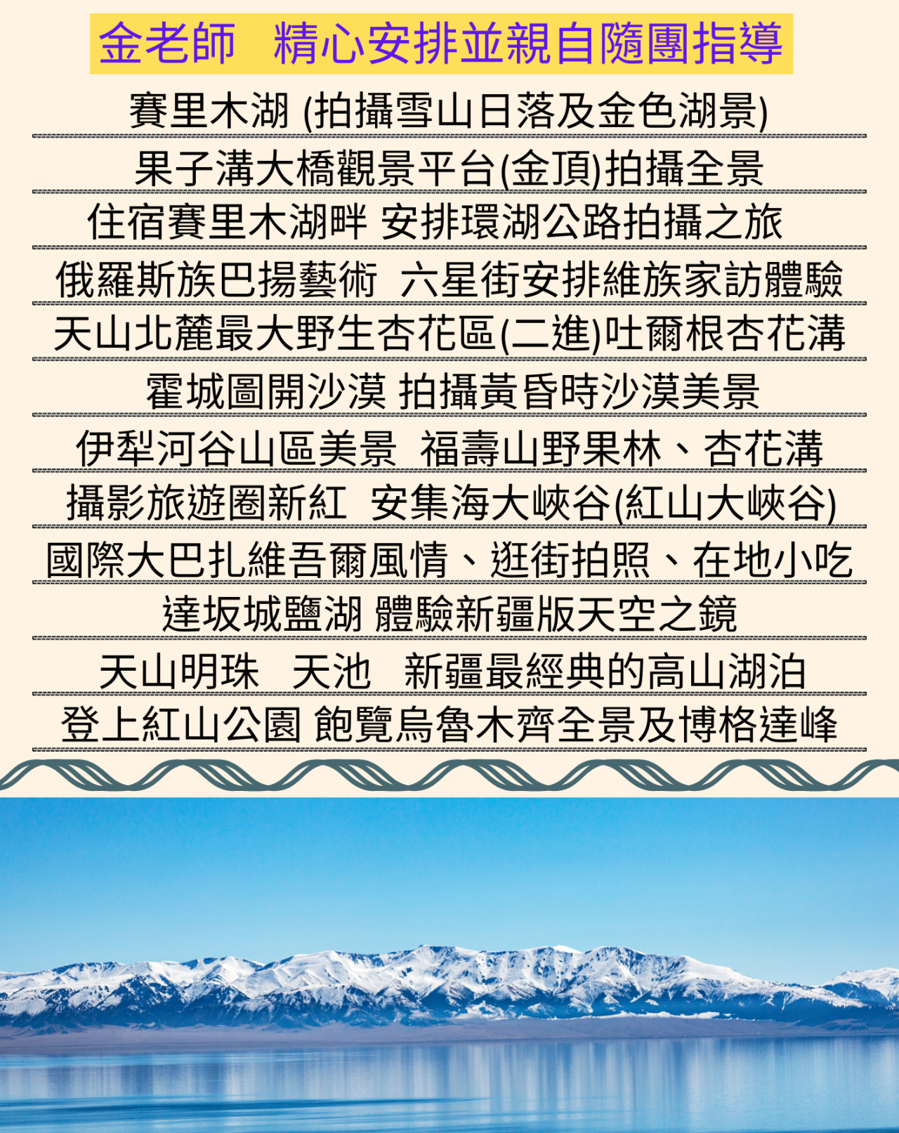 | 備註:春遊新疆伊犁杏花溝10日旅拍自由行(歡迎攝影同好報名*名額剩4位) |